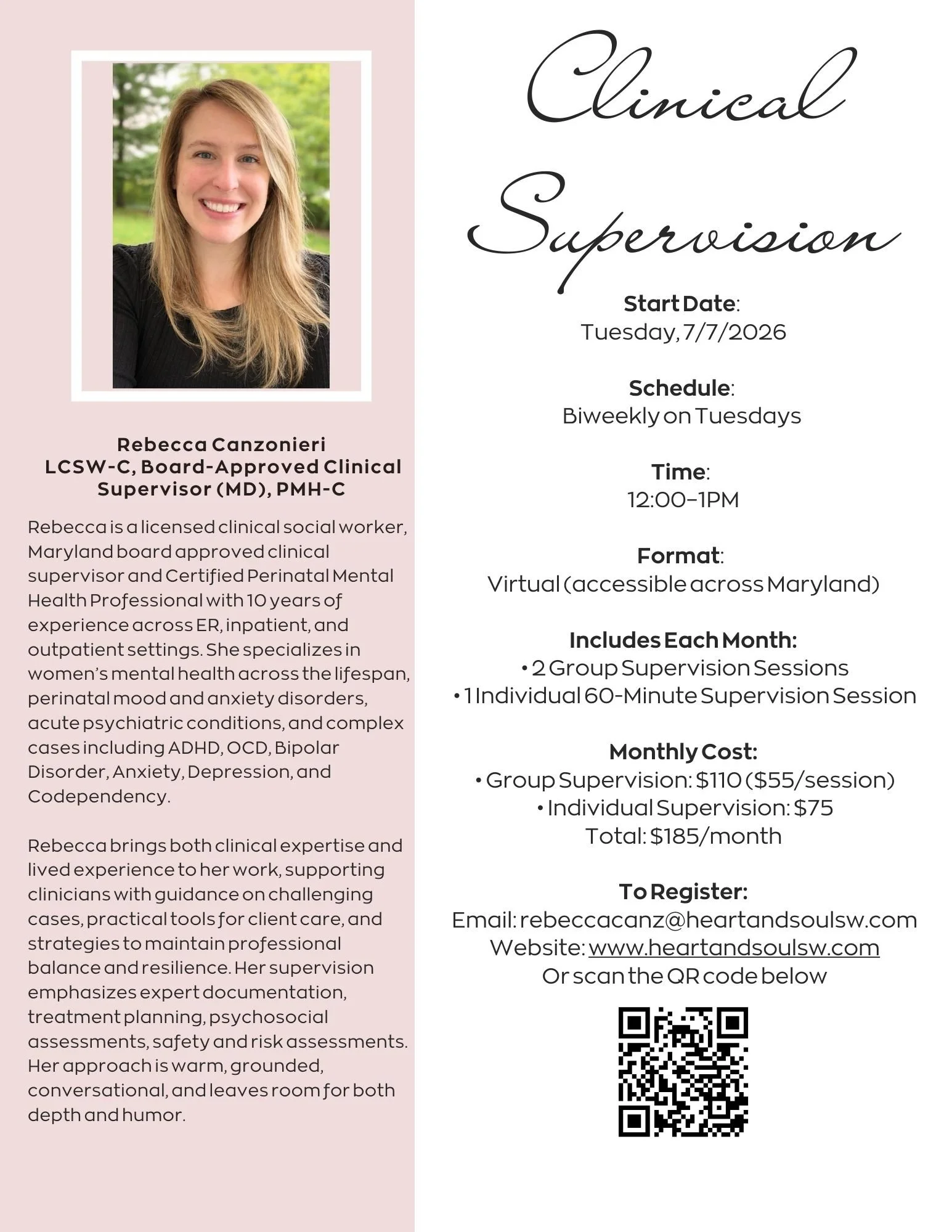 Led by: Rebecca Canzonieri, LCSW-C, Board-Approved Clinical Supervisor (MD), PMH-C